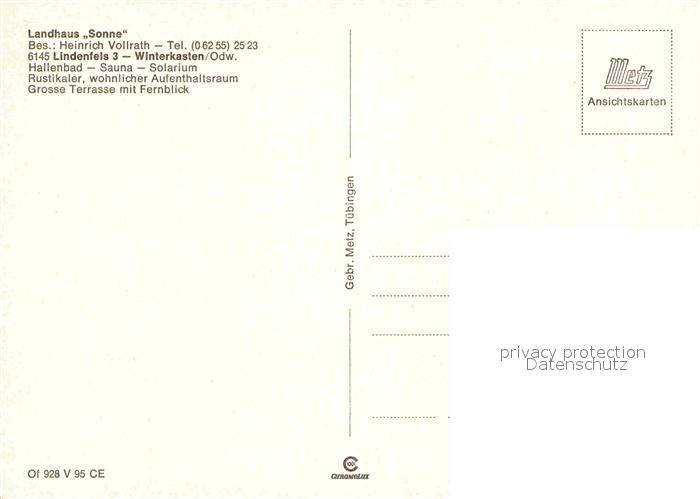 72671316 Winterkasten Lindenfels Landhaus Sonne postalisch nicht gelaufen Erhaltung siehe scans [NatalD47] KatCode: 11110006431015