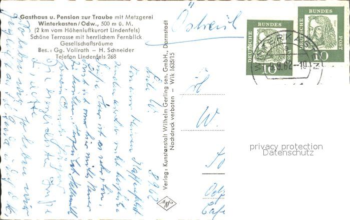 72250074 alte Postkarte Winterkasten Lindenfels Panorama Walburgiskapelle Katzenbuckel Fliegeraufnahme postalisch gelaufen Erhaltung siehe scans KatCode: 11110006431015