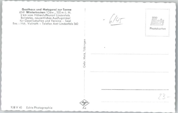 40673951 Winterkasten Lindenfels Winterkasten Gasthaus Metzgerei zur Sonne KatCode 11110006431015
