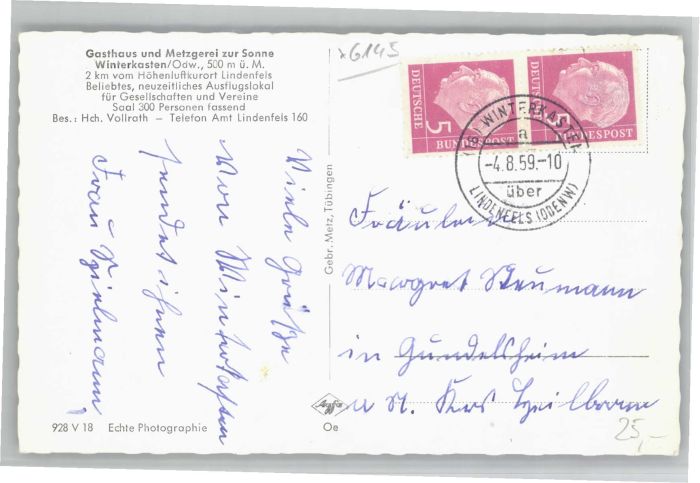 40673930 Winterkasten Lindenfels Winterkasten Gasthaus Metzgerei zur Sonne KatCode 11110006431015