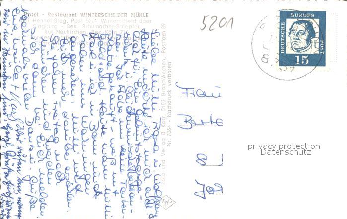 41606568 alte Postkarte Winterscheid Siegkreis Hotel Restaurant Winterscheider Muehle Wild postalisch gelaufen Erhaltung siehe scans KatCode: 11110005382052