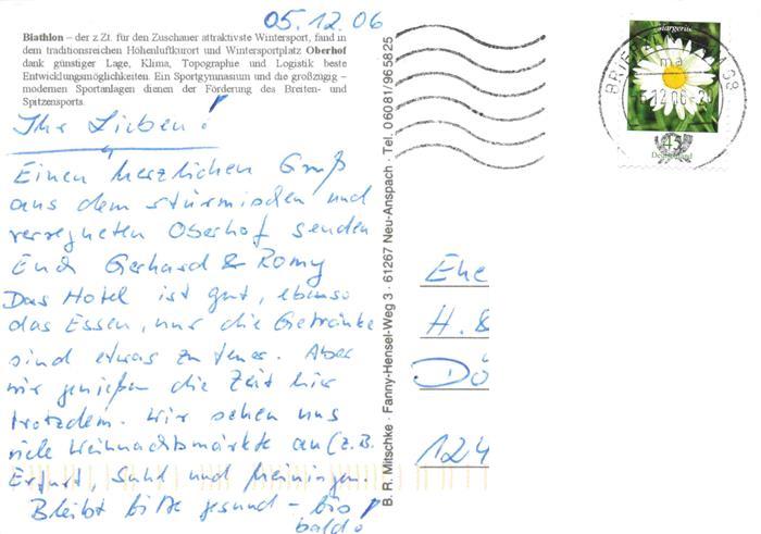 74027276 Wintersport Biathlon Oberhof postalisch nicht gelaufen Erhaltung siehe scans [SanaeD93] KatCode: 22520000000600