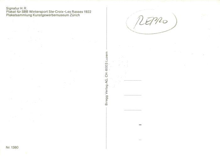 74030142 Wintersport SBB Ste Croix les Rasses Zuerich postalisch nicht gelaufen Reprokarte Erhaltung siehe scans [SanaeD93] KatCode: 22520000000600
