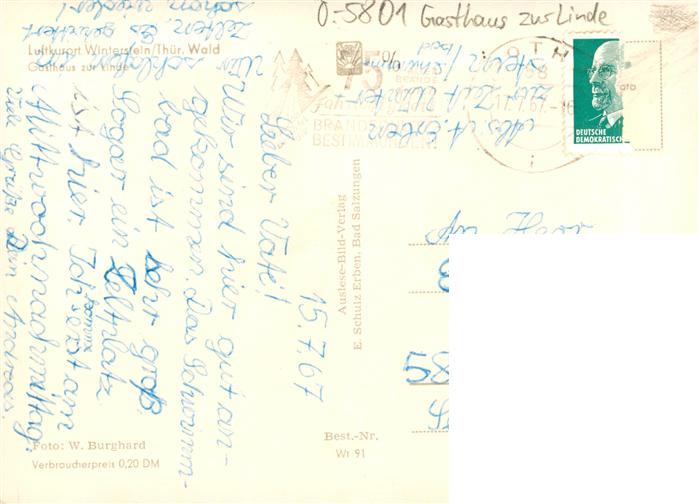 73890960 alte Postkarte Winterstein Emsetal Gasthaus zur Linde postalisch gelaufen Erhaltung siehe scans [FriedD77] KatCode: 11110016067084