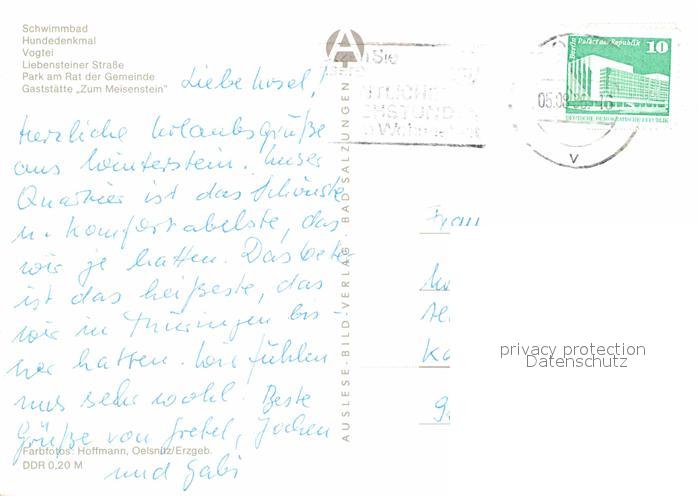 72617168 alte Postkarte Winterstein Emsetal Schwimmbad Hundedenkmal Vogtei Liebensteiner Strasse Rat der Gemeinde Gaststaette Zum Meisenstein postalisch gelaufen Erhaltung siehe scans [WerneD78] KatCode: 11110016067084