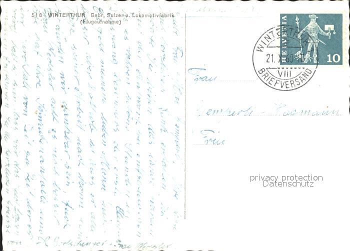 11658036 alte Postkarte Winterthur Fliegeraufnahme Gebrueder Sulzer Lokomitivfabrik postalisch gelaufen Erhaltung siehe scans KatCode: 11470260915546