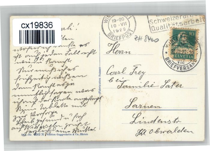 10738364 alte Postkarte Winterthur Kantons Schule postalisch gelaufen KatCode: 11470260915546