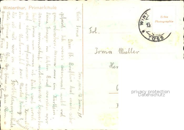 11650456 alte Postkarte Winterthur Primarschule postalisch gelaufen Erhaltung siehe scans KatCode: 11470260915546