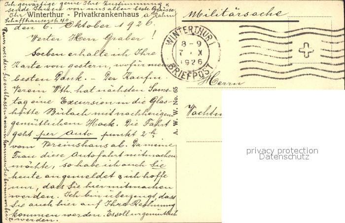 11652187 alte Postkarte Winterthur Privatkrankenhaus postalisch gelaufen Feldpost Erhaltung siehe scans KatCode: 11470260915546