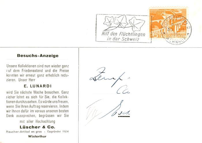 13873292 Winterthur ZH Luescher und Co Raucherartikel postalisch nicht gelaufen Erhaltung siehe scans [WerneD78] KatCode: 11470260915546