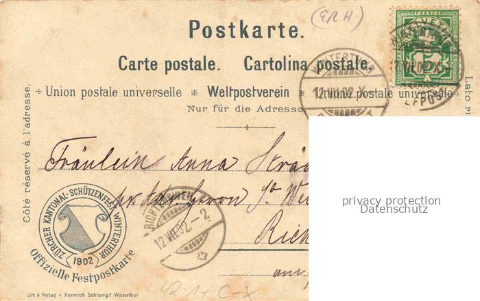 34143952 alte Postkarte WINTERTHUR ZH Zuercher Kantonalschuetzenfest postalisch gelaufen Erhaltung siehe scans [WerneD78] KatCode: 11470260915546