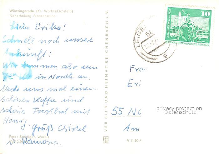 73046780 alte Postkarte Wintzingerode Naherholung Franzensruhe postalisch gelaufen Erhaltung siehe scans [PaolaD17] KatCode: 11110016061115