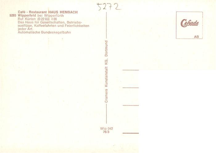 73893246 Wipperfeld Cafe Restaurant Haus Hembach Gastraeume Wegekreuz Panorama postalisch nicht gelaufen Erhaltung siehe scans [WerneD78] KatCode: 11110005374052