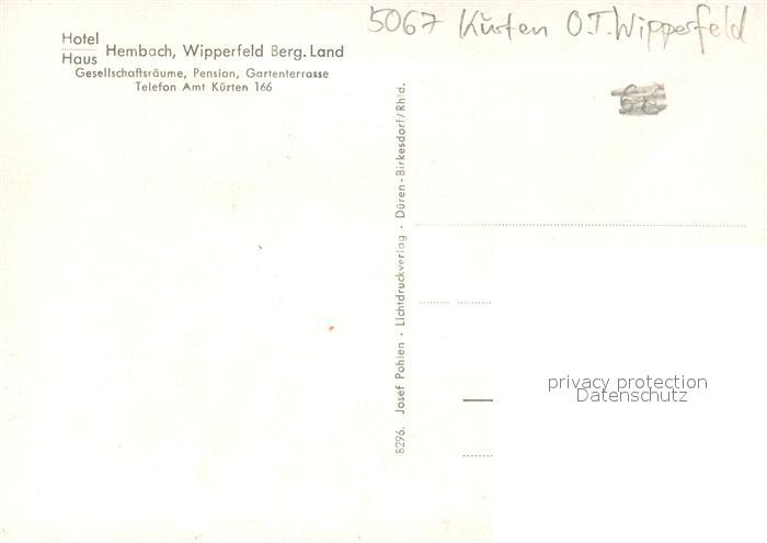 33702795 Wipperfeld Panorama Hotel Hembach postalisch nicht gelaufen Erhaltung siehe scans [WerneD78] KatCode: 11110005374052