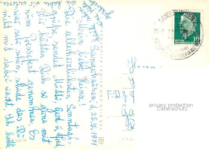 73081979 alte Postkarte Wippra Panorama Blick vom Brauberg Gaststaette Fachwerk Denkmalschutz Alte Poststrasse Kinderkrankenhaus postalisch gelaufen Erhaltung siehe scans [FriedD77] KatCode: 11110015087480