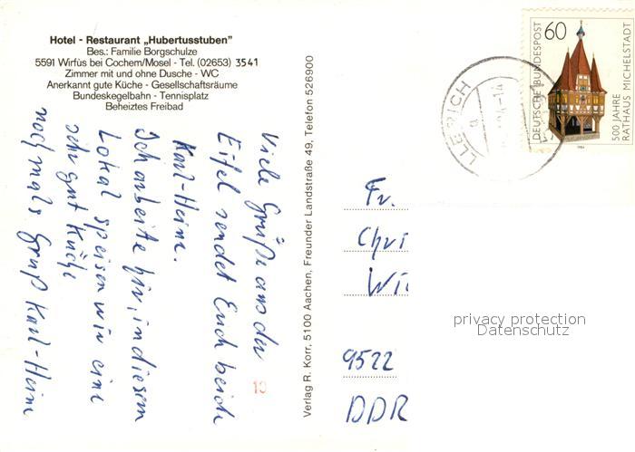 73543052 alte Postkarte Wirfus Hotel Restaurant Hubertus Stuben Kaminzimmer Swimming Pool postalisch gelaufen Erhaltung siehe scans [FriedD77] KatCode: 11110007135090