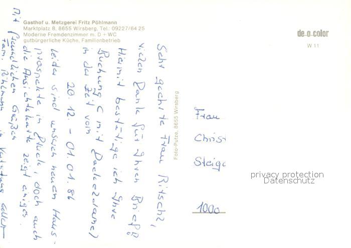 73086869 alte Postkarte Wirsberg Gasthaus Poehlmann Kirche Panorama postalisch gelaufen Erhaltung siehe scans [KathaD81] KatCode: 11110009477163