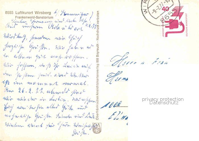 72778811 alte Postkarte Wirsberg Kulmbach Bayern Frankenwald Sanatorium Park Luftkurort postalisch gelaufen Erhaltung siehe scans [FriedD77] KatCode: 11110009477163