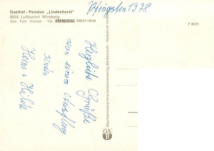 73879277 Wirsberg Kulmbach Bayern Gasthof Pension Lindenhorst Gastraeume Panorama postalisch gelaufen Erhaltung siehe scans [WerneD78] alte Postkarte Wern Katcode 11110009477163