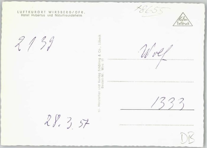 40237995 Wirsberg Kulmbach Bayern Hotel Hubertus Naturfreundeheim postalisch nicht gelaufen Alte Ansichtskarte Postkarte Katcode 11110009477163