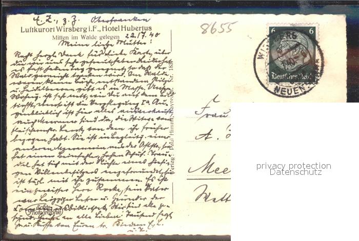 72150222 alte Postkarte Wirsberg Kulmbach Bayern Hotel Hubertus postalisch gelaufen Erhaltung siehe scans KatCode: 11110009477163