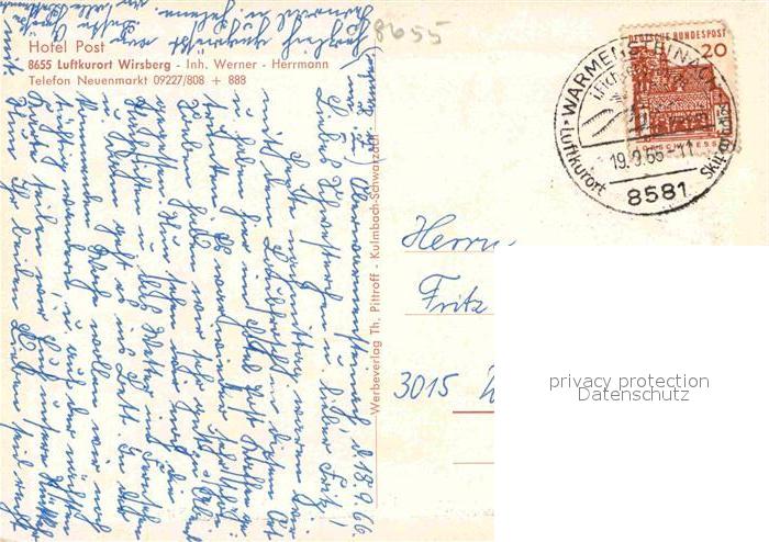 72909074 alte Postkarte Wirsberg Kulmbach Bayern Hotel Post postalisch gelaufen Erhaltung siehe scans [FriedD77] KatCode: 11110009477163