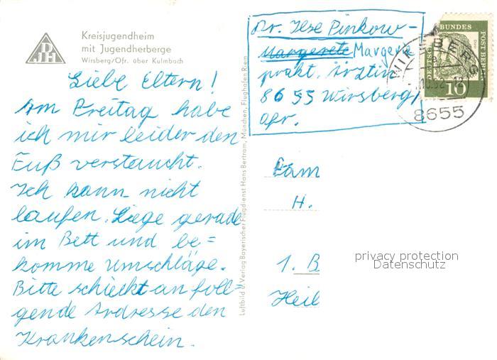 43352729 Wirsberg Kulmbach Bayern Kreisjugendheim mit Jugendherberge Fliegeraufnahme postalisch gelaufen Erhaltung siehe scans [WerneD78] alte Postkarte Wern Katcode 11110009477163