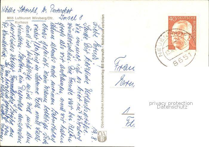 72016637 alte Postkarte Wirsberg Kulmbach Bayern Kurhaus postalisch gelaufen KatCode: 11110009477163