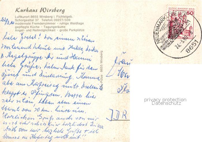73653313 Wirsberg Kulmbach Bayern Kurhaus Wirsberg Terrasse Speisesaal Kaminzimmer Panorama postalisch gelaufen Erhaltung siehe scans [WerneD78] alte Postkarte Wern Katcode 11110009477163
