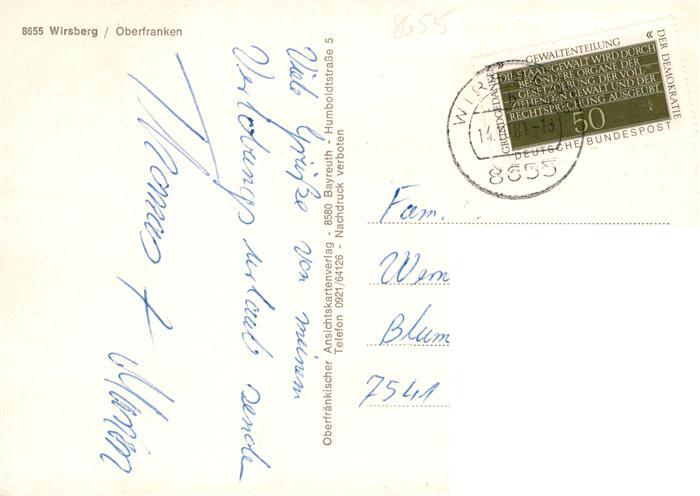 73940584 Wirsberg Kulmbach Bayern Luftaufnahme Brunnen Ortszentrum Freibad postalisch gelaufen Erhaltung siehe scans [FriedD77] alte Postkarte Frie Katcode 11110009477163
