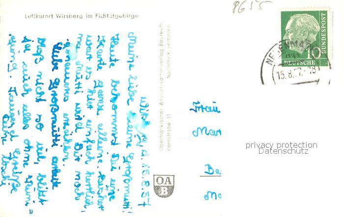 43352273 Wirsberg Kulmbach Bayern Ortsansicht postalisch gelaufen Erhaltung siehe scans [WerneD78] alte Postkarte Wern Katcode 11110009477163
