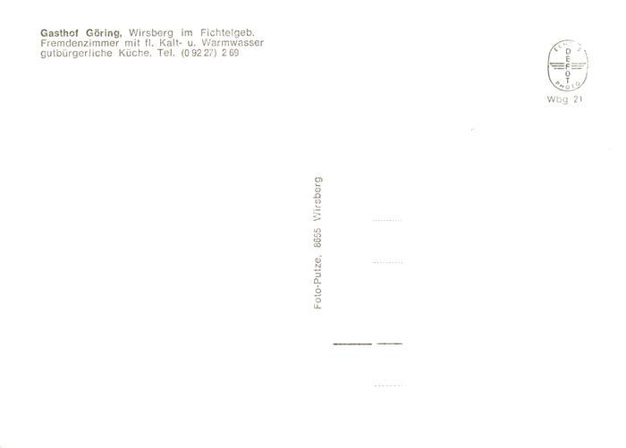 73869863 Wirsberg Kulmbach Bayern Panorama Gasthof Goering Gaststube postalisch nicht gelaufen Erhaltung siehe scans [FriedD77] Frie Katcode 11110009477163