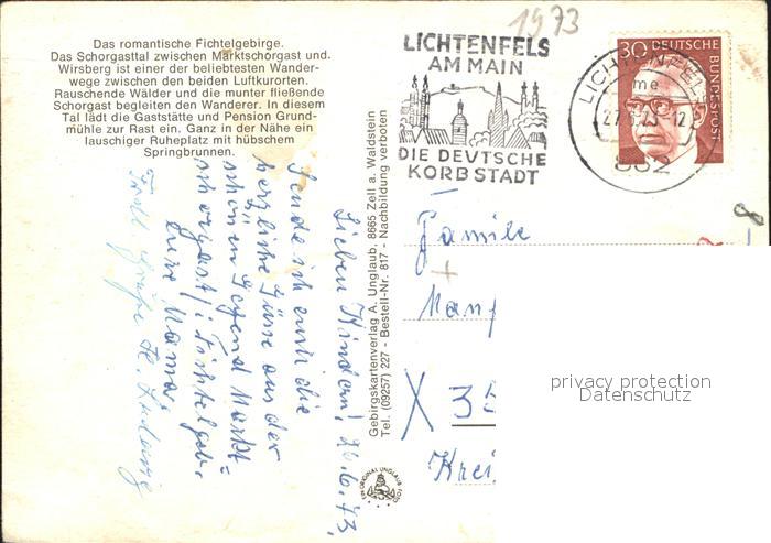 72318481 alte Postkarte Wirsberg Kulmbach Bayern Schorgasttal postalisch gelaufen Erhaltung siehe scans KatCode: 11110009477163