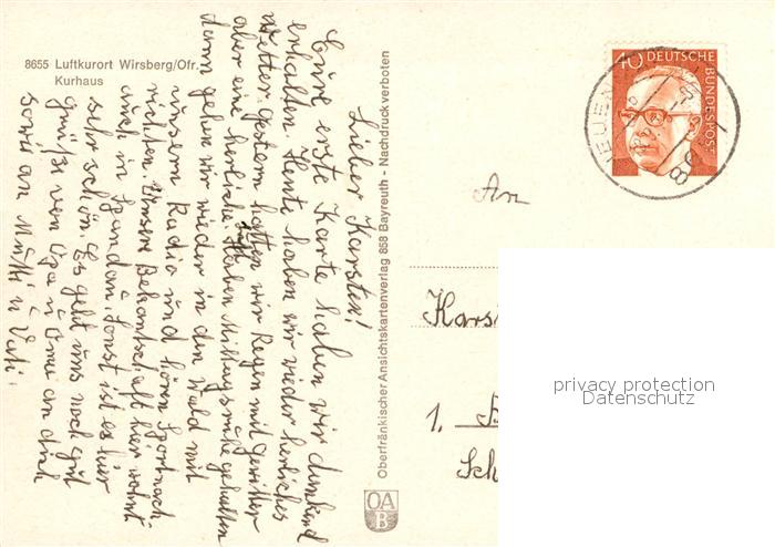 72971351 alte Postkarte Wirsberg Kurhaus Restaurant Terrasse postalisch gelaufen Erhaltung siehe scans [FriedD77] KatCode: 11110009477163