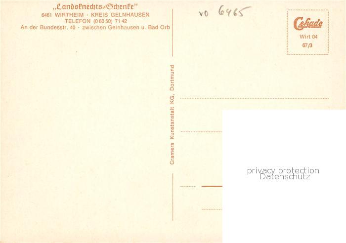73863289 Wirtheim Biebergemuend Landsknechts-Schenke postalisch nicht gelaufen Erhaltung siehe scans [FriedD77] KatCode: 11110006435003