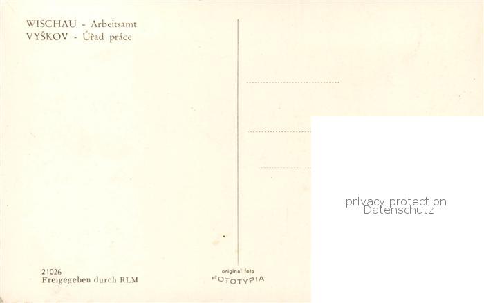 73850126 Wischau Vyskov CZ Arbeitsamt postalisch nicht gelaufen Erhaltung siehe scans [WerneD78] Wern Katcode 11520
