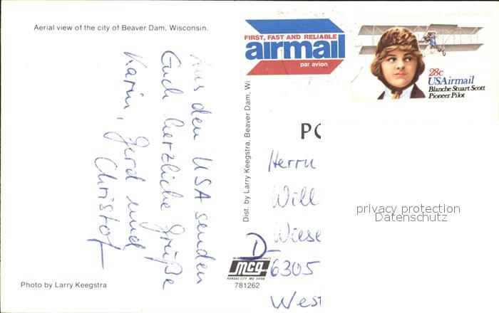 72547544 old postcard Wisconsin Aerial view of the city of Beaver Dam postalisch gelaufen Erhaltung siehe scans [WerneD78 kv017box] KatCode: 14140
