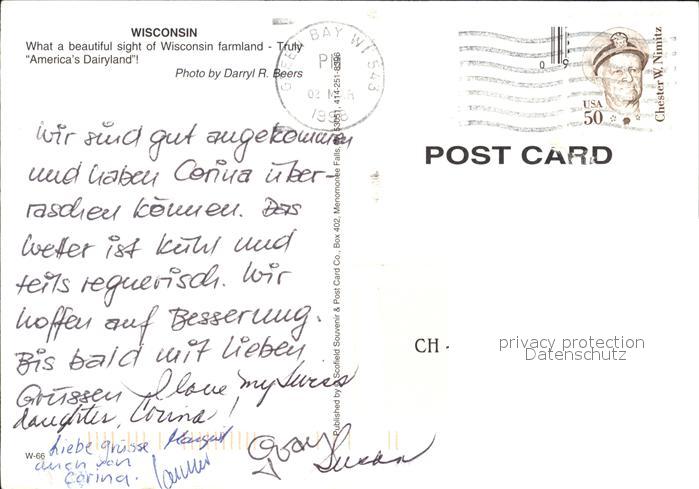 72590538 old postcard Wisconsin Farmland postalisch gelaufen Erhaltung siehe scans [LiesaD40] KatCode: 14140