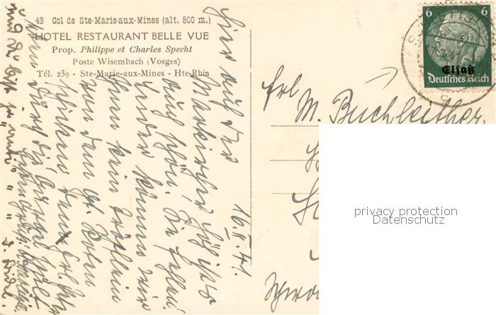13777191 Wisembach Vosges Hotel Restaurant Belle Vue postalisch gelaufen Erhaltung siehe scans [WerneD78] carte postale Wern Katcode 11170088388526