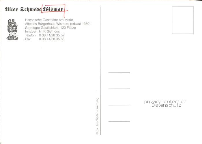 72532644 Wismar Mecklenburg Alter Schwede Histor Gaststaette am Markt Gastraeume postalisch nicht gelaufen Erhaltung siehe scans [WerneD78 kt116box] KatCode: 11110013006000