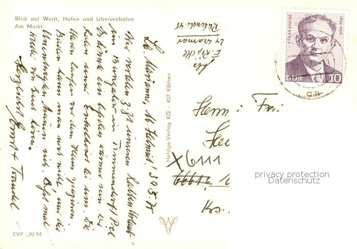 73871485 alte Postkarte Wismar Mecklenburg Blick auf Werft Hafen und Unterseehafen Am Markt postalisch gelaufen Erhaltung siehe scans [WerneD78] KatCode: 11110013006000
