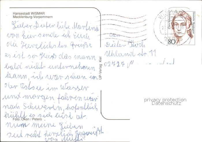 72337200 alte Postkarte Wismar Mecklenburg Gaststaette Restaurant Hafenpanorama Hansestadt Kirche postalisch gelaufen Erhaltung siehe scans KatCode: 11110013006000