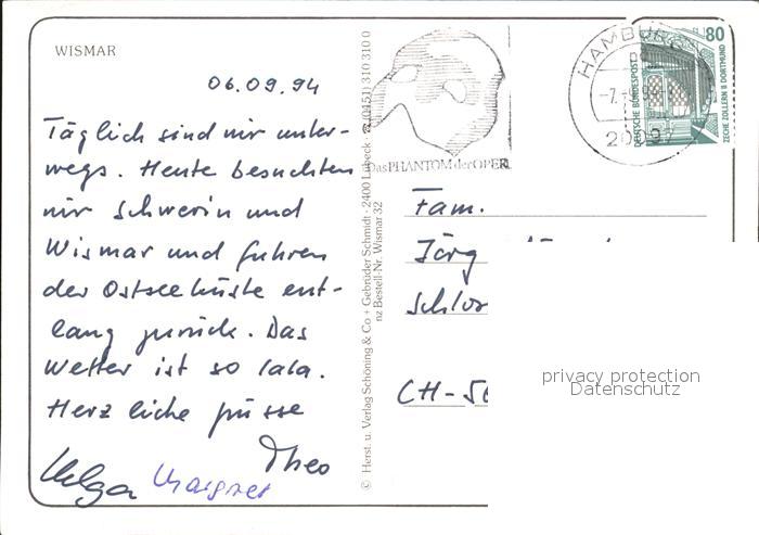 72585737 alte Postkarte Wismar Mecklenburg Hafen Kraemerstrasse Wassertor postalisch gelaufen Erhaltung siehe scans [LiesaD40] KatCode: 11110013006000