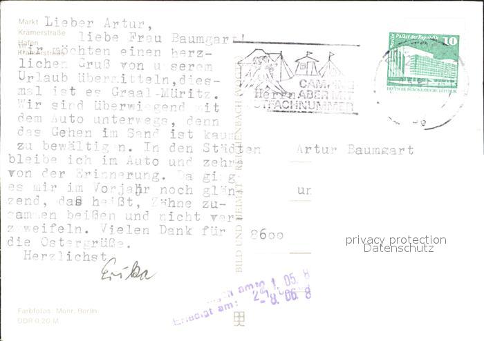 72324660 alte Postkarte Wismar Mecklenburg Hafen Markt Kraemerstrasse postalisch gelaufen Erhaltung siehe scans KatCode: 11110013006000