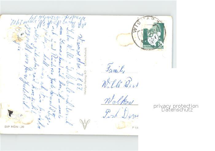 72383903 alte Postkarte Wismar Mecklenburg Hafen Markt Rathaus Wasserkunst Platz des Friedens postalisch gelaufen Erhaltung siehe scans KatCode: 11110013006000