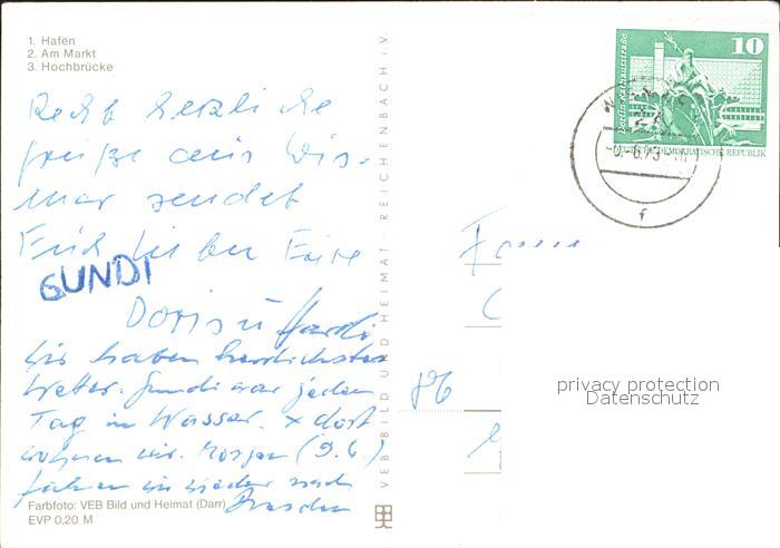 72337047 alte Postkarte Wismar Mecklenburg Hafen Schiffe Markt Wasserkunst Hochbruecke postalisch gelaufen Erhaltung siehe scans KatCode: 11110013006000