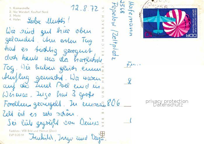 72919681 alte Postkarte Wismar Mecklenburg Kraemerstrasse Wendorf Kaufhof Nord Markt Hafen postalisch gelaufen Erhaltung siehe scans [FriedD77] KatCode: 11110013006000