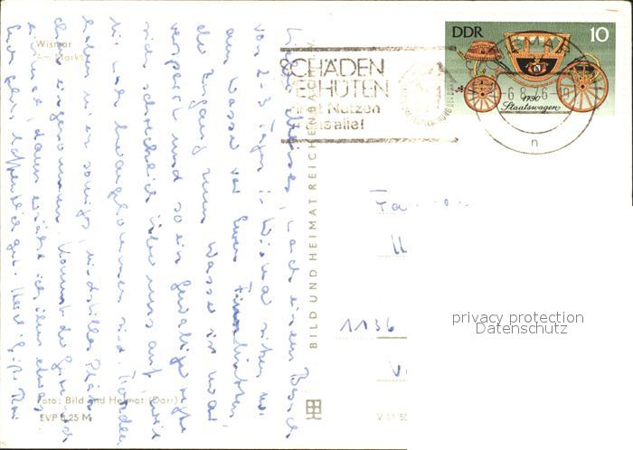 72315506 alte Postkarte Wismar Mecklenburg Markt postalisch gelaufen Erhaltung siehe scans KatCode: 11110013006000