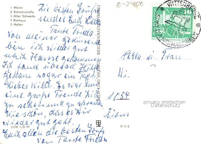 73044274 alte Postkarte Wismar Mecklenburg Markt Kraemerstrasse Alter Schwede Rathaus Hafen postalisch gelaufen Erhaltung siehe scans [WerneD78] KatCode: 11110013006000