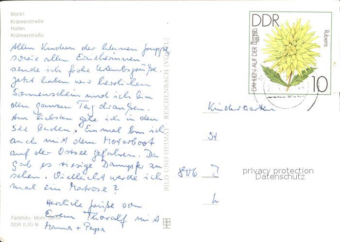 72371379 alte Postkarte Wismar Mecklenburg Markt Kraemerstrasse Hafen Dampfer postalisch gelaufen Erhaltung siehe scans KatCode: 11110013006000